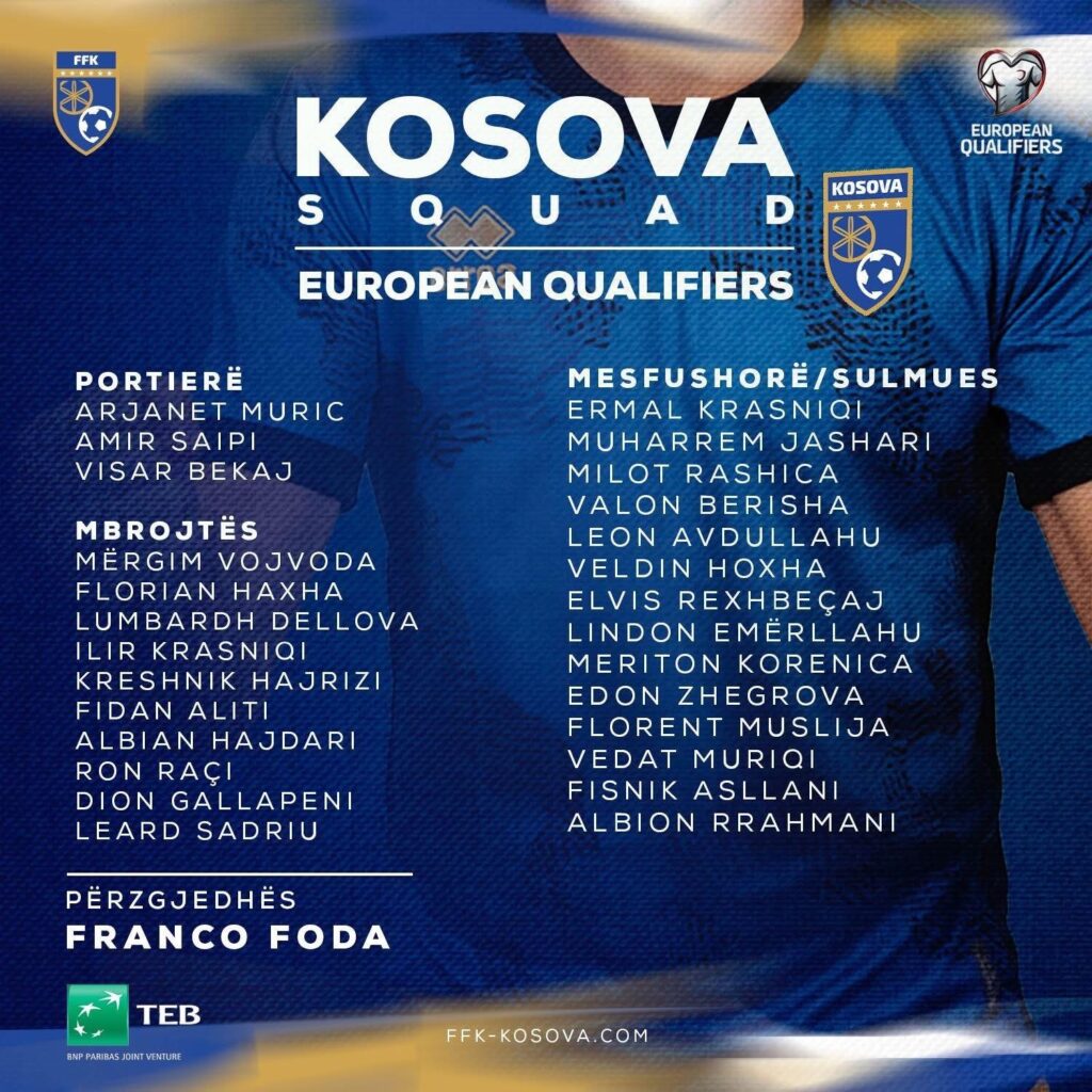 Pjesë e listës janë edhe ‘veteranët’ si Vedat Muriqi, Valon Berisha, Milot Rashica, Fidan Aliti dhe Mërgim Vojvoda, teksa mungon kapiteni Amir Rrahmani.