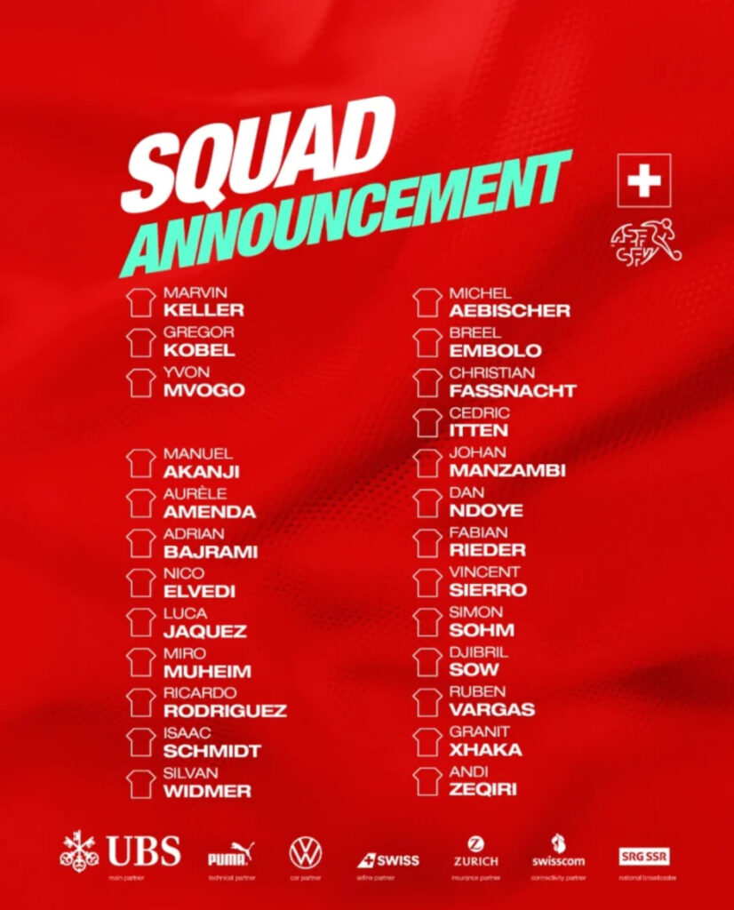 Selektori i Zvicrës, Murat Yakin, të mërkurën shpalli listën për dy ndeshjet e fundit kualifikuese për Kupën e Botës 2026. Zvicra më 15 nëntor e pret Suedinë në Gjenevë, ndërsa më 18 nëntor luan në “Fadil Vokrri” me Kosovën.